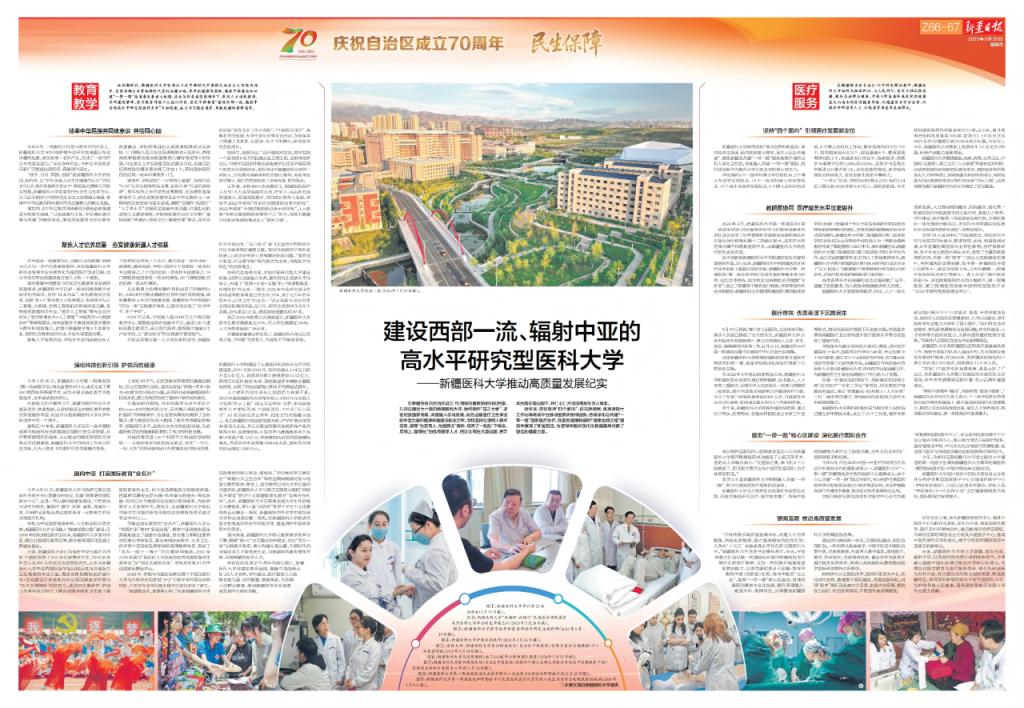站在自治区成立70周年的新征程上,beat365唯一官方网站将锚定教育强国、健康中国战略目标,以人才培养、学科建设、医疗服务三大战略支柱为基,协同赋能、锐意革新,为保障人民群众健康、推动新疆经济社会高质量发展作出新医贡献。