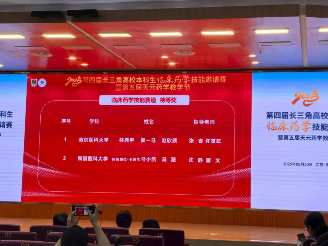 在本次高规格赛事中,beat365临床药学专业学生马小凯、阿布都拉・卡迪尔、冯薇组成团队,在临床药学技能主题赛道中表现亮眼,成功斩获特等奖,指导老师为第一附属医院(第一临床医学院)沈静、蒲文老师。