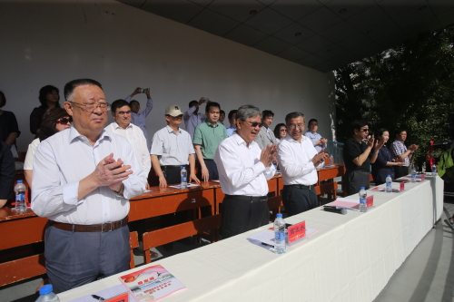 校党委书记高发水、校长凯赛尔·阿不都克热木,校领导张向阳、耿直、姚华、 毛新民、安冬青、孔宪明、贾文霄站着主席台上,向每一个通过的运动员代表队热情致意。