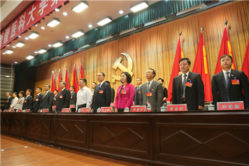 校党委书记高发水主持大会。自治区党委教育工委副书记、教育纪工委书记、自治区纪委驻教育厅纪检组组长王昌霖出席会议并讲话。自治区高校党代会指导工作组自治区党委组织部严华同志一行3人出席会议。大会主席团成员在主席台就座。
