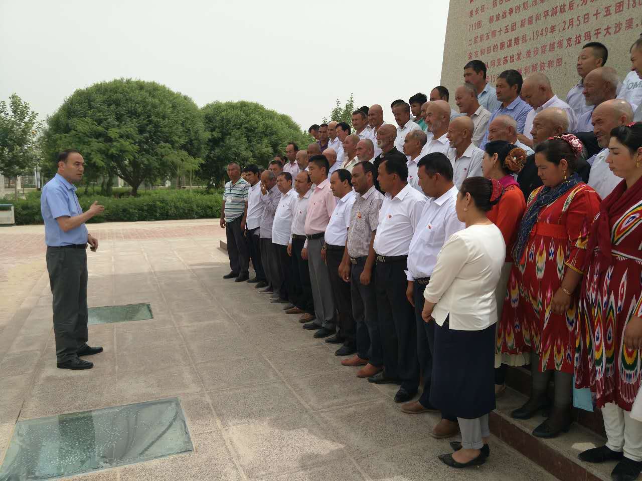 6月21日,工作队组织村里的党员、村干部、部分群众参观新疆生产建设兵团农十四师47团屯垦纪念馆,在纪念碑下为大家上了一节生动的党课。