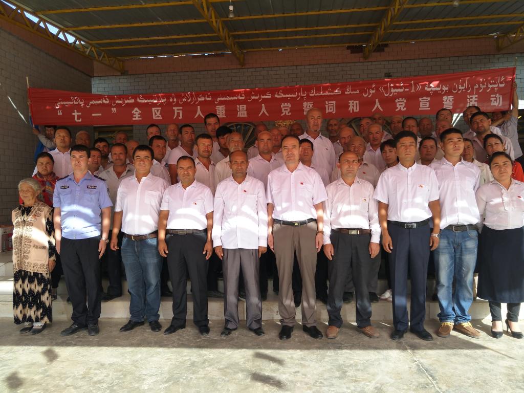根据自治区统一部署,工作队在7月1日举行升国旗仪式,带领村工作队(乡镇下派干部)中的党员、英吾斯塘村村民党员重温入党誓词;由大学生村官布萨热罕•艾力代表作发生亮剑;村第一书记阿里木江•艾山为参加活动人员上专题党课;表彰村优秀党务工作者、村优秀共产党员;大家集体合唱红歌《没有共产党就没有新中国》 ,举行誓师签名活动。