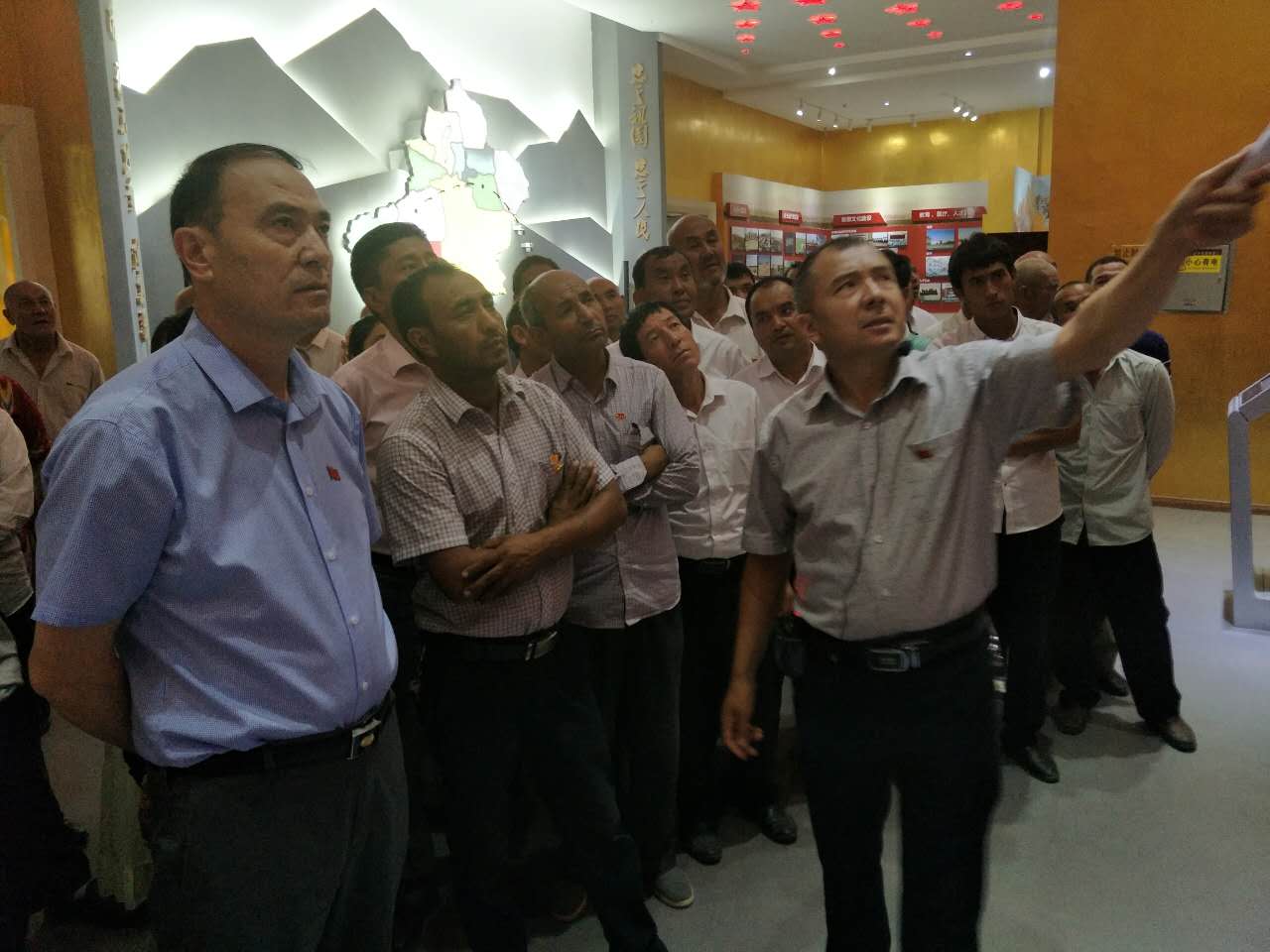 纪念馆里陈设的一件件藏品虽已然老旧风化,但那曾经的历史却真实而鲜活;信件和照片虽已破损泛黄,可记录着60多年来和田解放与发展的峥嵘岁月。面对着这些珍贵的展品,大家时而啧啧称赞,时而感慨万千。大家在工作队讲解员的引领下,通过这些详实的文字、图片、视频、实物等资料,了解了兵团的发展历史;了解了47团在解放和田、建设和田征程中的光荣历史,学习了英雄模范的先进事迹。全体党员得到精神的洗礼,深切地体会到了祖国发展的日新月异以及现今幸福生活的来之不易。