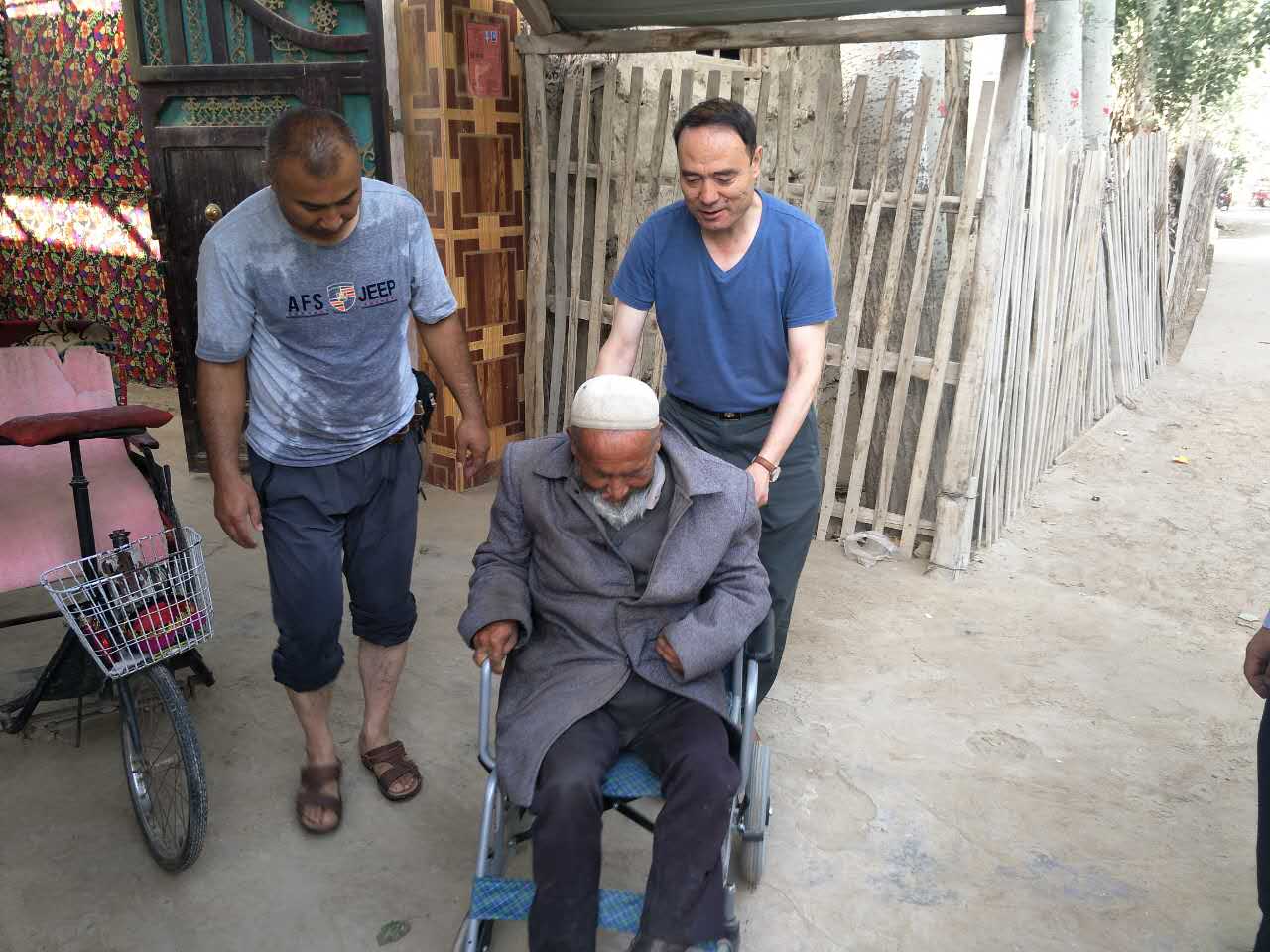 英吾斯塘村1组21号如则麦麦提•艾力老人腿部残疾,行动不便,他在工作队入户走访时反映希望有个轮椅,工作队认真记下他的困难诉求,在七一前夕为他送上轮椅。
