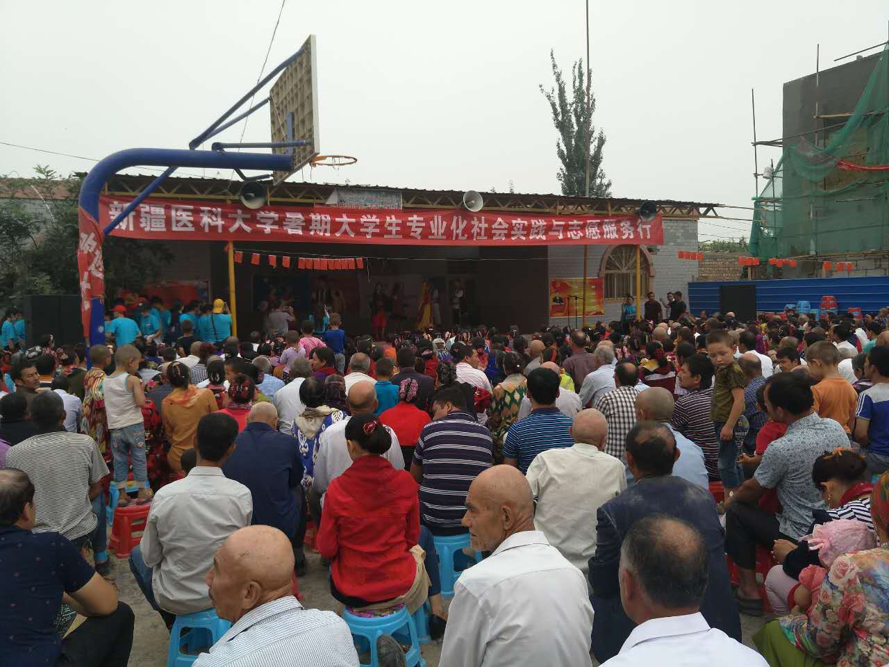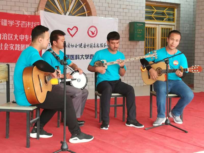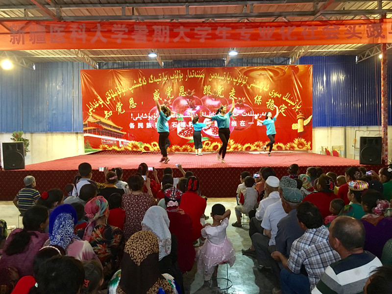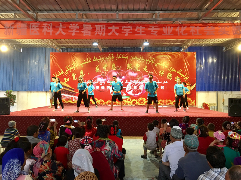 7月15日下午4时,烈日当空,热浪袭人,beat365唯一官方网站暑期社会实践总队的同学们冒着骄阳酷暑,来到墨玉县扎瓦镇库提热木村为村民们提供义诊、宣讲和文艺演出。