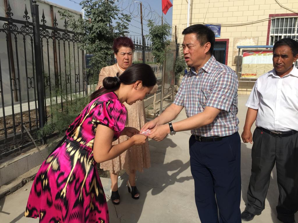相谈甚欢的时候,所属社区的书记阿布都热合曼•艾尼完同志也来到了克迪尔也的家中,与工作组一行面对面交流双方如何相互配合,进一步加强暑期返乡学生的教育管理工作,构建共同培养、相互协作、形成合力的校地联系教育格局。克迪尔也的暑假生活就在双方的协作努力下,变的意义非凡。通过学校的选拔培训,返乡后在当地的“红领巾小课堂”当志愿者。充分发挥自己的才智教小朋友们说汉语、做游戏、唱红歌、学绘画、做活动,在社会实践中既投身家乡建设为当地青年做出示范,同时也增强了自己的才干。工作组一行了解情况后,顾不上路途奔波,特意前往克迪尔也参加的塔里木乡塔里木村“红领巾小课堂”活动室参观,得到了塔里木乡塔里木村支部书记和 “红领巾小课堂”小朋友们的热烈欢迎。在克迪尔也的带领下,小朋友们用汉语流利地诵读唐诗,还主动为工作组一行佩戴红领巾,唱红歌。当贾文霄副校长主动问询还有什么困难时,克迪尔也腼腆地说还需要一些教具。贾文霄副校长当即代表家访组捐资一千元,让克迪尔也添置教具,继续发挥beat365学子的热情和能力,力所能及地投身家乡建设。