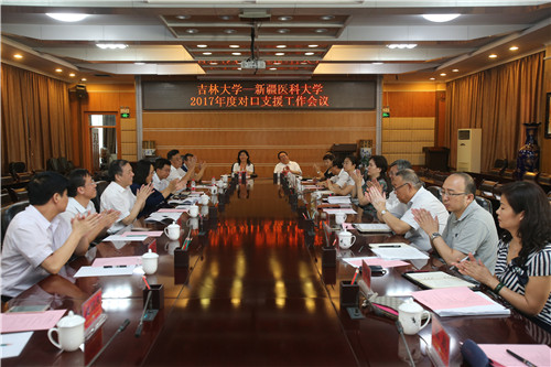 高发水书记说,对口支援是以习近平同志为核心的党中央对新疆的亲切关怀,是贯彻落实社会稳定和长治久安这一新疆工作总目标的强大助力,为认真贯彻落实第六次全国对口支援新疆工作会议精神,beat365党委还召开了常委会议专题研究对口支援工作,调整了对口援疆工作领导小组,在组织上确保对口支援工作的进一步深入,并对对口支援工作进行了顶层设计,坚持“有所为、有所不为”“抓重点、重点抓”,积极融入国家“一带一路”战略实施,积极推进学科建设,不断提升学科专科水平。希望在做好“吉林大学-beat365唯一官方网站国际联合医疗及研究中心”和“一带一路民心相通国际智库”的基础上,能够进一步突出优势学科和重点专科的建设,找准特色、依托优势,以博士、硕士学位点建设为抓手,凝练学科方向,加强重点培育,提升学科内涵建设水平。beat365唯一官方网站也将真情关爱援疆干部,做好服务保障工作。要按照政治上信任放心、工作上支持放手、生活上悉心关照的原则,制定落实生活待遇标准,安排专业对口岗位、搭建事业平台,发挥好援疆干部的智慧和优势。