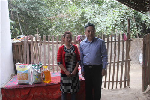 姚校长详细询问了家里的情况以及有什么困难需要帮助。阿米乃·阿卜杜拉说,自己是个单亲妈妈,丈夫因心脏病过世,她独自担当起家庭的重担,供三个孩子上学。今年因核桃树嫁接,收入不如去年,但是在beat365唯一官方网站“访惠聚”驻村工作队的积极联系与帮扶下,她去224团等地打工增加收入。阿米乃·阿卜杜拉说:“现在党的各项政策太好了,驻村工作队也很给力。村委会有了文化宣传广场;村里的富民安居房今年就会实现全覆盖;村里也有了全民健身器,闲暇之余村民们能够锻炼身体;村里的垃圾站建设,使附近几个村的村容村貌发生了很大的变化。”姚校长说:“看到你通过自身的努力,在党的惠民政策指引下,生活过得越来越好,为你感到高兴。希望你能带动身边的兄弟姐妹努力脱贫,过上好日子。咱们今天成为亲戚了,你有什么困难,随时可以找我啊。”阿米乃高兴地合不拢嘴。