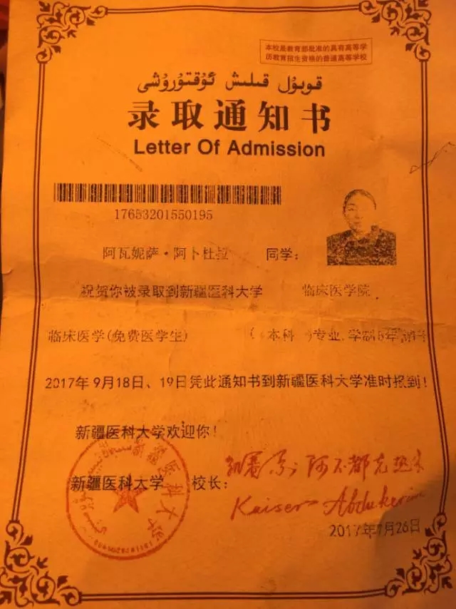 我知道每一个帮助我的人,他们并不想得到什么回报,我曾写了一封感谢信被和田县零距离刊发,随后还有媒体介入采访,但他们怕影响到我的高考。如今高考已结束,我想通过再次写信的方式感谢那些帮助我的人,是你们对我不离不弃并一心一意帮我,是你们让我重拾破碎的梦想,我将在大学好好学习,将来做一个对社会有用的人,我想这就是我对你们最好的回报。同时,我更要让那些固执宗教极端思想的人看看,现在的我活得很精彩,我的未来充满希望。