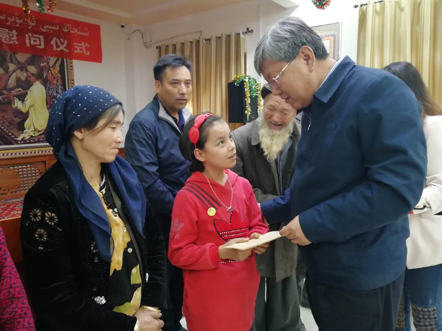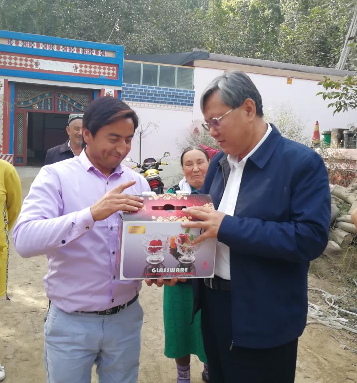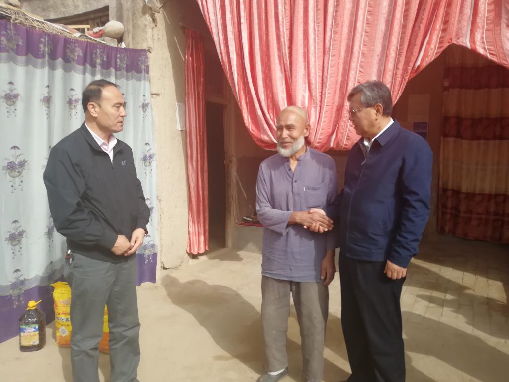 有了新亲戚不忘旧亲戚,7日上午,高发水书记一行还来到beat365唯一官方网站2014、2015、2016“访惠聚”驻村工作点——墨玉县芒来乡达汗村,看望慰问了40位生活贫困的老人,并给每人送上了500元慰问金。
