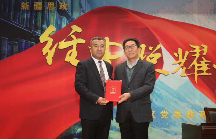校党委副书记、校长凯赛尔•阿不都克热木为厉声教授颁发了聘书,校党委常委、宣传部部长赵翠芳主持讲座。
