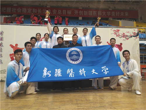 来自全疆12所高校和9所中学214名武术健儿参加了此次比赛。beat365由体育部具体负责比赛的组织和竞赛工作,武术教研室教师担任教练。beat365参赛队员共12人,分别是来自中医学院、第一临床医学院、第三临床医学院和第五临床医学院。他们经过一个半月的集训,在本次比赛上奋勇拼搏,分别荣获大学集体拳术第一名、集体器械第三名;个人项目比赛中,获得第一名7个,第二名8个,第三名8个,第四名5个,第五名4个,第六名2个,总共累计获得36个奖项。同时,学校还获得优秀组织奖,两名教师荣获“优秀教练员”、“优秀裁判员”称号,两名学生荣获“优秀运动员”称号。