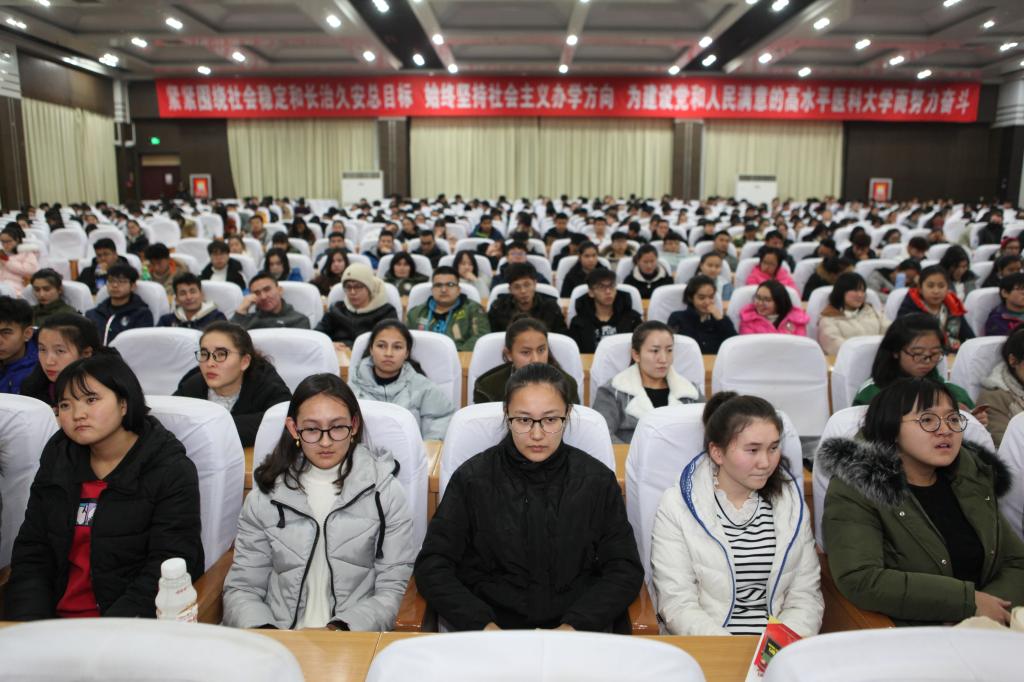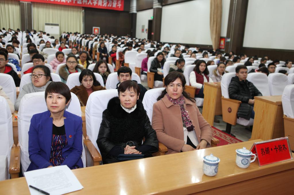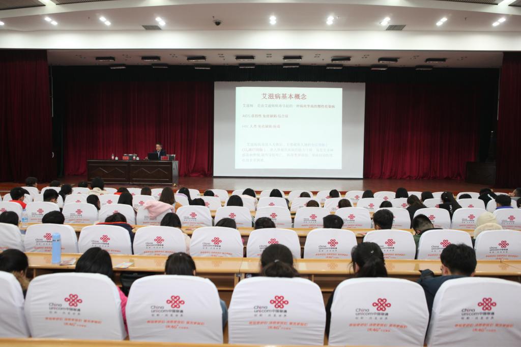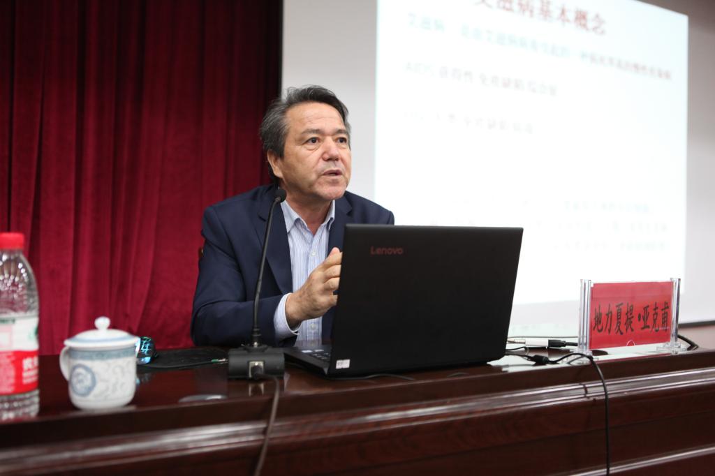 为普及艾滋病防治知识,增强大学生自我保护意识,11月29日晚八点,自治区防治艾滋病工作委员会办公室主任、新疆艾滋病性病防治协会会长、自治区十一届政协委员、beat365唯一官方网站硕士研究生导师地力夏提•亚克甫教授为beat365师生作了题为“携手防艾,重在预防”的预防艾滋病知识讲座。beat365唯一官方网站副校长热娜·卡斯木,职能部门、相关学院工作人员及学生聆听了讲座。校团委书记马翠主持讲座。