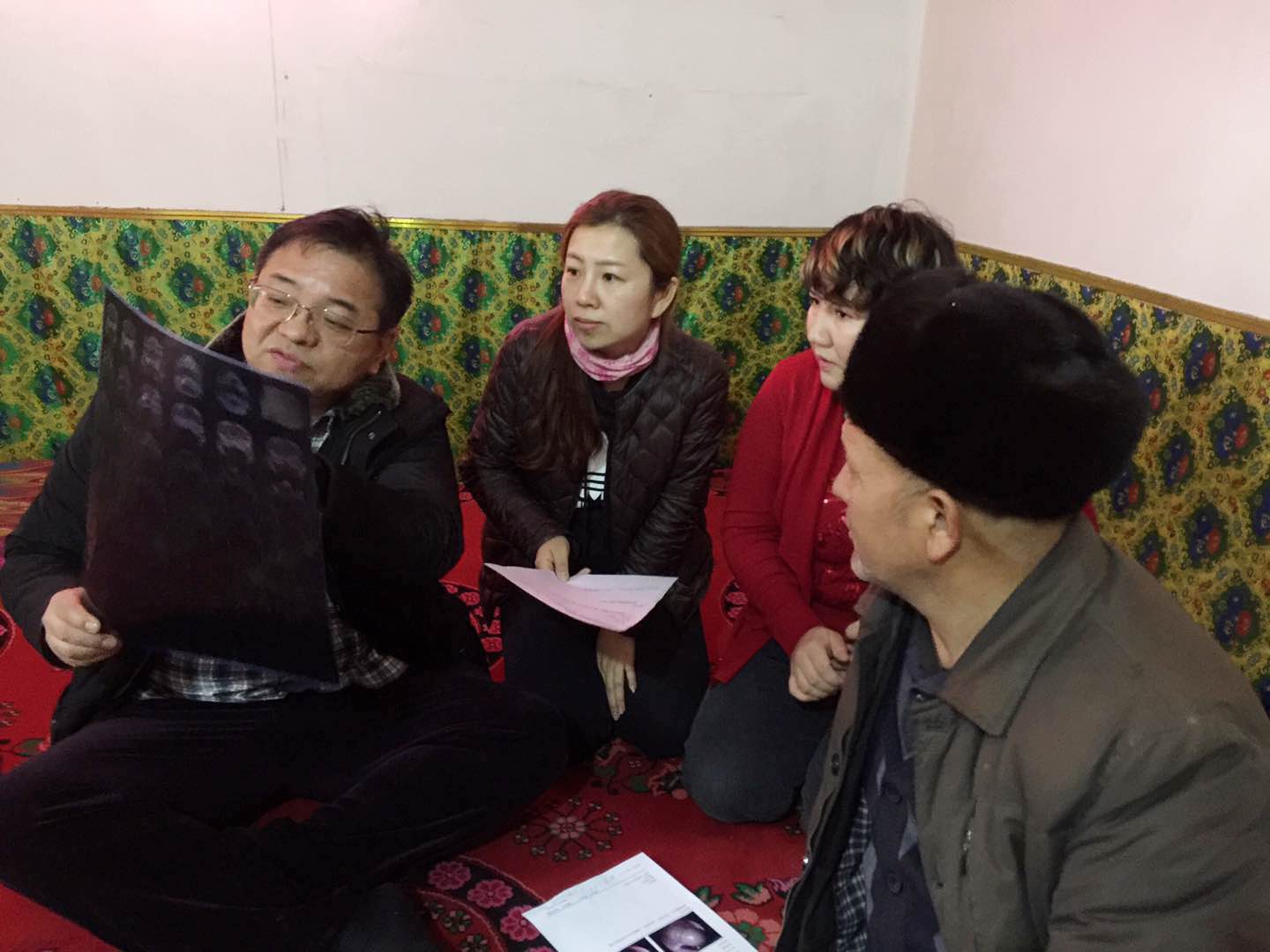 聊天中,结亲干部发现阿力木江大叔欲言又止,好像是有什么事要说。在结亲干部地一再询问下,阿力木江大叔说:“我最近呼吸困难,鼻子里感觉长了东西,睡觉打呼噜,特别的难受。”阿力木江大叔是家里的顶梁柱,孝顺们的孩子因为爸爸的病情十分焦急,他们担心爸爸长得是肿瘤。得知这一情况后,结亲干部梁敏立即联系并邀请了同队的结亲干部耳鼻喉专家雍军为阿力木江大叔进行诊治。