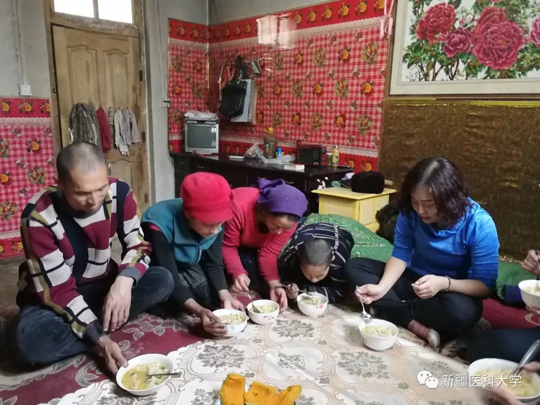 这天,下雪极少的巴夏克其村天空飘起了晶莹剔透的雪花,地面白雪皑皑。尽管气温很低,但一推门,整洁的房间,干净的被褥,滚烫的茶水,新医大一附院结亲干部人力资源部梁敏的亲戚阿力木江•托合提克热木一家人热情的笑容吹散了结亲干部们的寒冷。