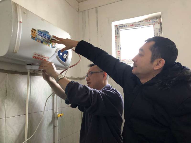 在达汗村八十五岁老人如孜买买提家中,当结亲组发现家中热水器损坏,亲戚家人洗澡困难时,六附院胸外科医生穆扎帕主动去乡里为亲戚购买了热水器的零件和修理热水器的工具,同维吾尔医学院党委书记刘向阳和教务处邱剑均两位同志一同把热水器修理好,解决了老人洗漱困难的问题。