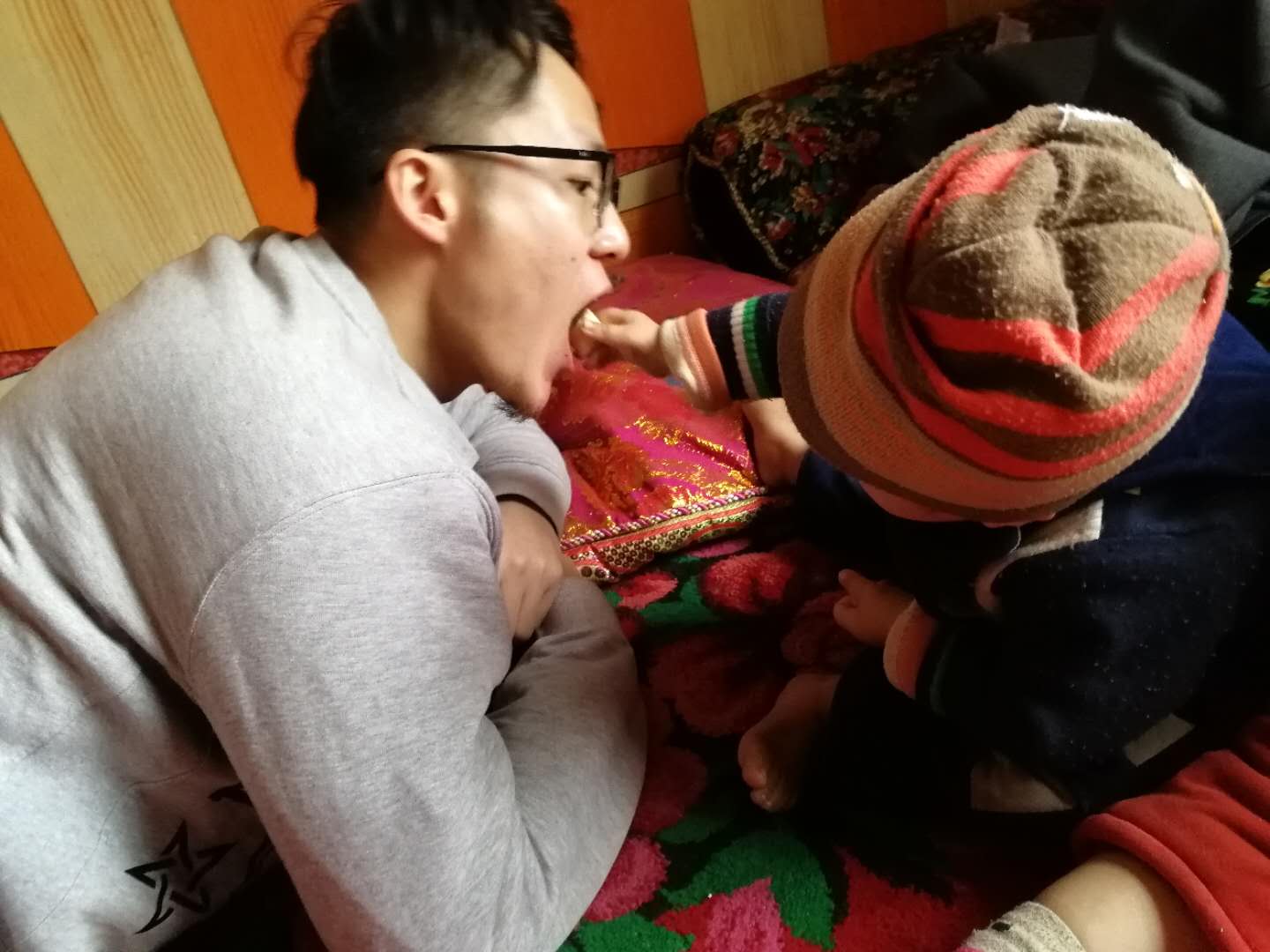 阿力木江大叔的大儿子夏伊买尔丹将结亲干部们请到炕上坐下,端上了精心准备的糖果茶点,开心指着阿力木江大叔穿的羊毛衫说:“这衣服就是上一次姐姐来给爸爸买的。”大家围坐在一起,边喝茶边向亲戚一家宣传党的各种惠民政策和党的十九大精神,阿力木江大叔竖起大拇指说:“感谢共产党,我们全家坚决拥护党中央。”