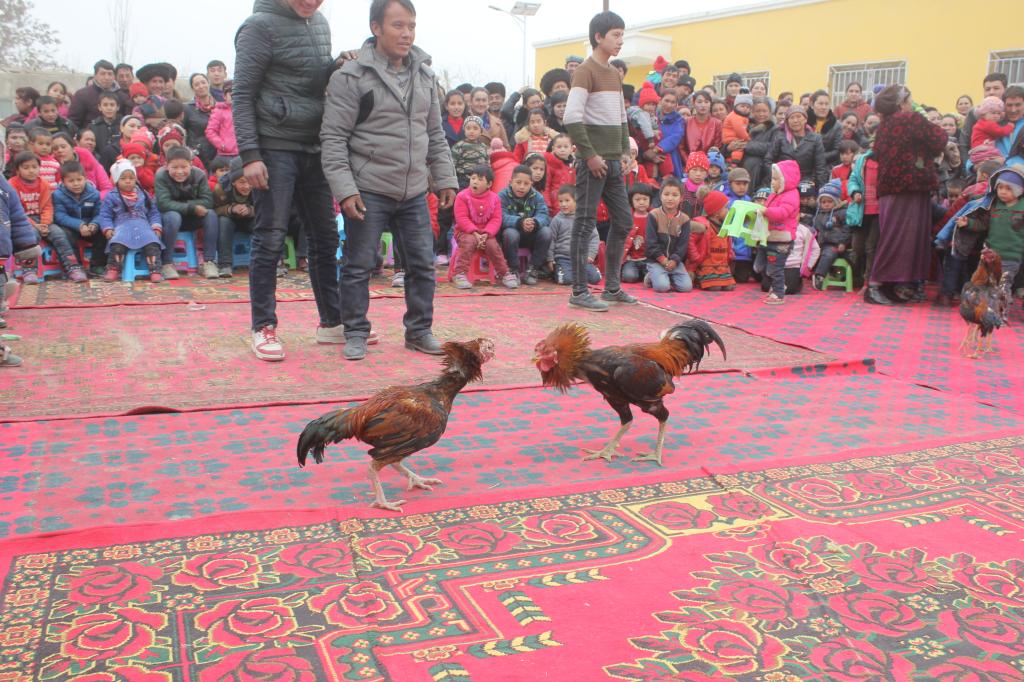 文艺活动内容异彩纷呈,贴近生活,极具中华文化和新疆地方特色。既有极具维吾尔族民族特色的顶碗舞、麦西来普、都塔尔弹唱,也有极具爱国情怀的的独唱《我是中国人》、合唱《没有共产党就没有新中国》,大学生的街舞表演、拔河比赛、踢毽子比赛、斗鸡比赛也穿插其中,全村30名党员、预备党员狗年第一天的发声亮剑活动更是把此次活动推向了高潮。