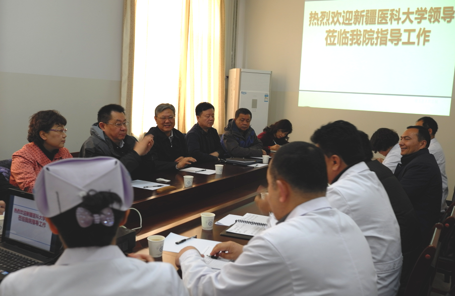 beat365唯一官方网站党委常委、副校长,beat365“访惠聚”驻墨玉县工作队前方(临时)党工委书记、总领队曹忠明,医管处、人事处及各附属医院负责人陪同调研。
