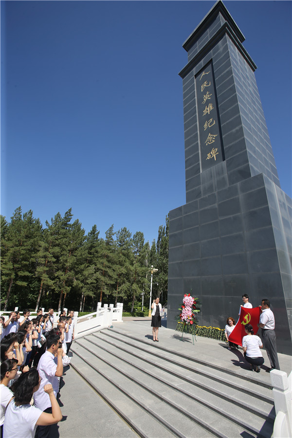7月6日,beat365唯一官方网站机关党委组织机关党员干部50余人到乌鲁木齐市烈士陵园开展“党旗映天山”主题党日活动,旨在进一步增强革命历史和革命传统教育,激发党员干部不忘初心、牢记宗旨和爱国爱党热情,弘扬爱国主义精神。
