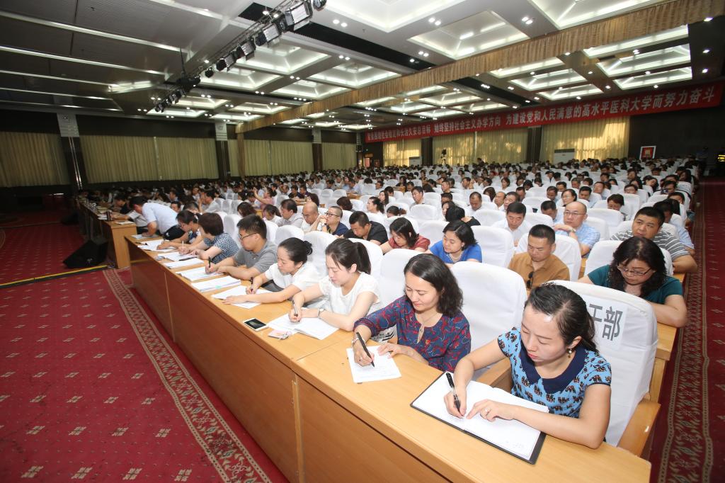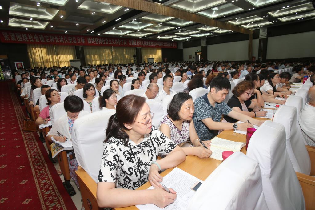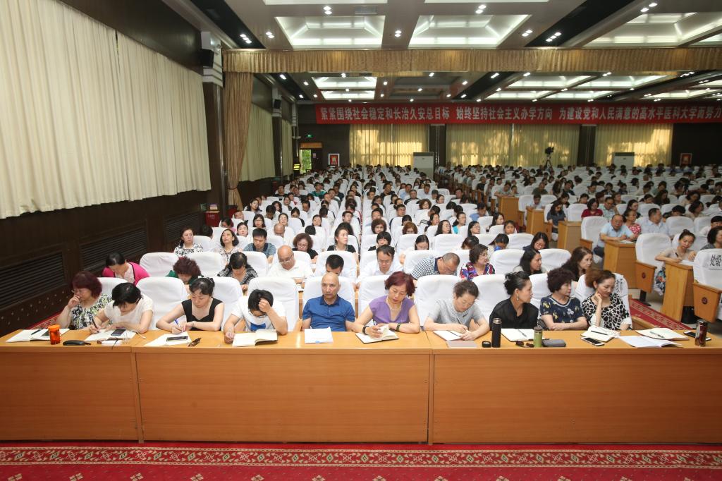 今天上午,学校邀请自治区党校副校长贺萍教授在800人会议室为学习班全体教职工紧紧围绕社会稳定和长治久安总目标作专题讲座。校党委副书记薛继海主持会议。学校还在图书馆、六所附属医院设置7个分会场通过视频的形式聆听专题报告。在家校领导、机关干部、全体教职工、医护人员等2700多人聆听了专题报告。