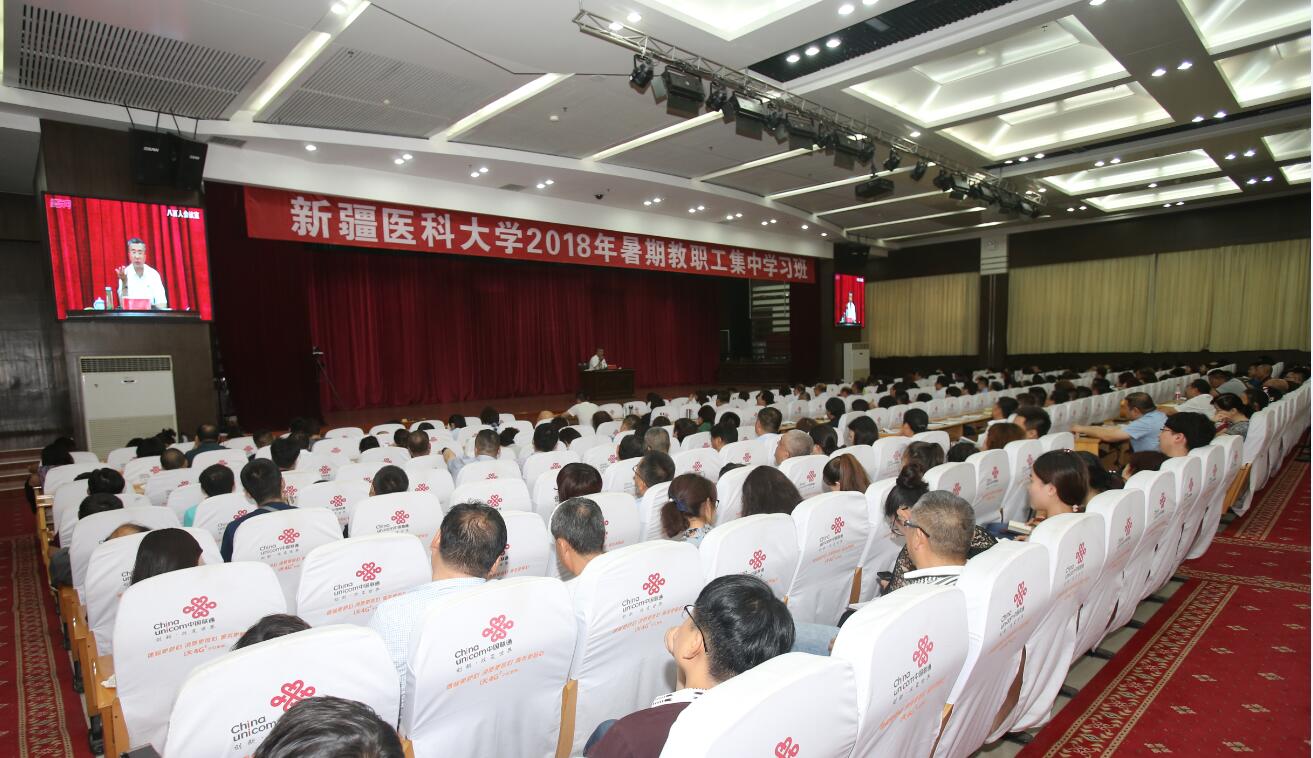 7月13日下午,beat365唯一官方网站2018年暑期教职工集中学习班结课,校党委副书记、校长凯赛尔·阿不都克热木在临床教学楼800人主会场通过视频会议系统为全体教职工作专题讲座。