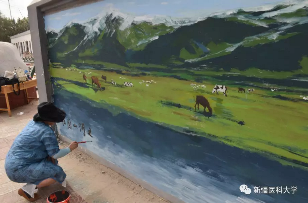 为进一步美化乡村环境,打造乡村文明新风尚,传递脱贫攻坚的正能量,beat365唯一官方网站“访惠聚”工作队连续三年邀请山东青岛大学美术学院的师生来到墨玉县开展“南疆艺术扶贫丝路行”活动。这次艺术扶贫活动为期11天,17名来自青岛大学美术学院国画、水彩画、油画、平面设计等不同专业的师生,以“大美新疆”、“社会主义核心价值观”等为主题,在beat365唯一官方网站8个“访惠聚”工作队所驻村设计创作了大型墙体绘画446平方米,同时为240多名幼儿园、小学生进行了美术、绘画方面的知识培训。