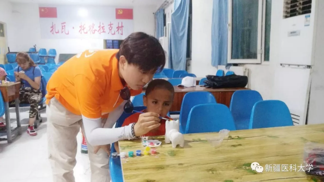 来自青岛大学美术学院国画专业大三的徐宣已经是第二次参与艺术援疆支教活动了。去年第一次到墨玉艺术支教后,让她深深的感受到这里的孩子对绘画的渴望、对生活的热爱和对她再次到来的期许。她说:“南疆一行使我的人生更加丰富多彩、也让我开阔了眼界、更加了解到祖国的广阔和美丽。这里小朋友们对知识的渴望,学习时的快乐,一直深深感动着我。去年我与小朋友们约定,今年还要来看望他们、继续教他们美术绘画。今天我履行我的承诺再次来到墨玉县,我要将我的所学,用心用情的倾力传授给这里的孩子们。”今年的文化扶贫丝路行活动,许宣再次报名参加,并且根据去年的经验精心做好准备。希望能为祖国南疆可爱的孩子们做更多力所能及的事。