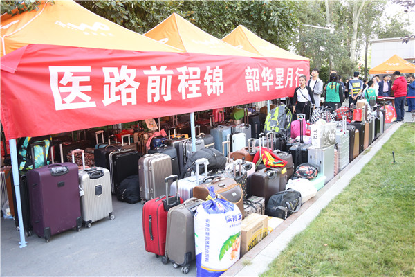 学校设置了方便新生报到的行李存放区