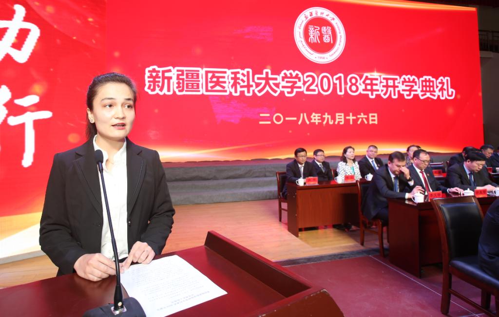 来自第一临床医学院的研究生谢天宇同学代表在校生发言。他与新同学分享了自己的大学经历及感悟,希望大家积极融入新的生活和学习当中,珍惜时间,认真学习,沉淀自我,学会思考,全面发展,传承新医优秀的文化基因。2018级研究生新生哈米拉·普尔凯提、校本部2018级本科新生阿里木江·阿不都热依木、克拉玛依学院2018级本科新生吉祥分别发言。新生们在发言中表达了进入beat365唯一官方网站习的喜悦和对即将展开的崭新大学生活的向往,大家表示将谨记“好学、力行、笃医、创新”的校训,争做品学兼优的新医人。表示作为怀揣未来梦想、承载亲人希望的新医学子,一定会不断努力,向着未来的方向扬帆起航。