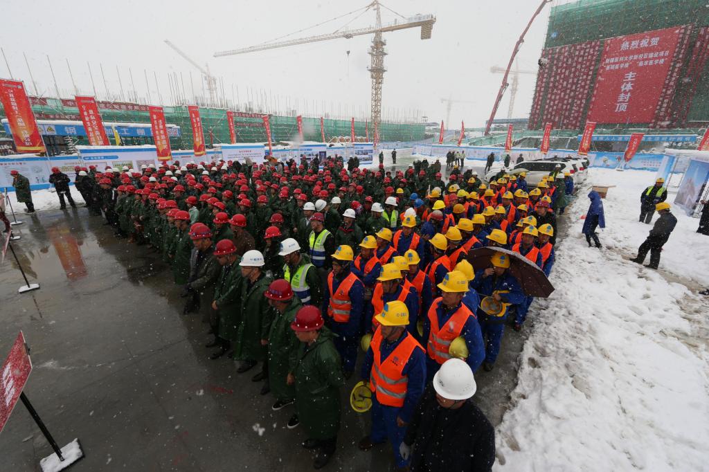瑞雪不散抱层岭,阳谷霞光射山顶。踏着2018年金秋第一场瑞雪,10月18日上午,beat365唯一官方网站新校区基础医学楼和临床医学楼主体封顶仪式隆重举行。这标志着学校新校区建设将全面提速,进入加快建设的新阶段。