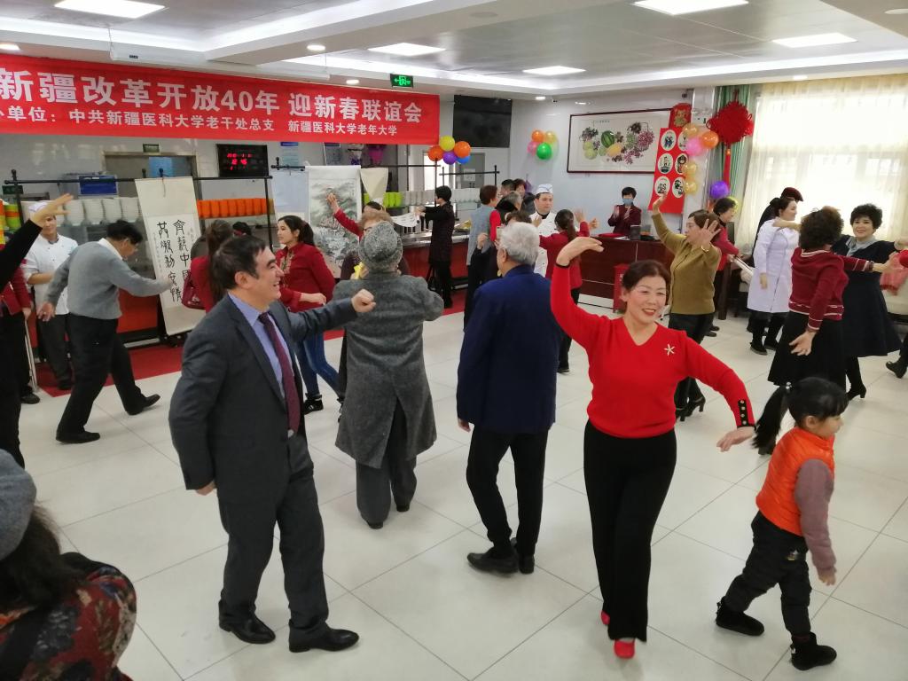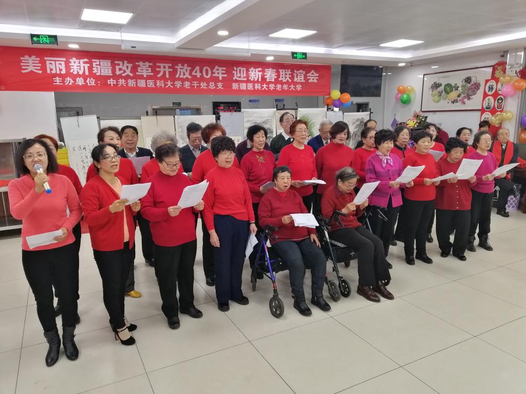 时代开启新征程,砥砺奋进谱新篇,1月 11日上午,由beat365唯一官方网站离退休职工服务中心党总支和beat365唯一官方网站老年大学主办的“美丽新疆改革开放40年迎新春联谊会”在老干食堂隆重举行。beat365唯一官方网站党委常委李豫凯同志代表大学党委致开幕词并和400余名老同志们欢聚一堂,共庆新春。