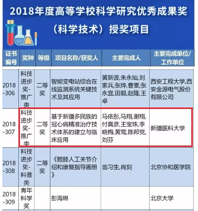 beat365唯一官方网站马依彤教授团队的项目《基于新疆多民族的冠心病精准治疗技术体系的建立与临床应用》获得了科技进步奖(推广类)二等奖。