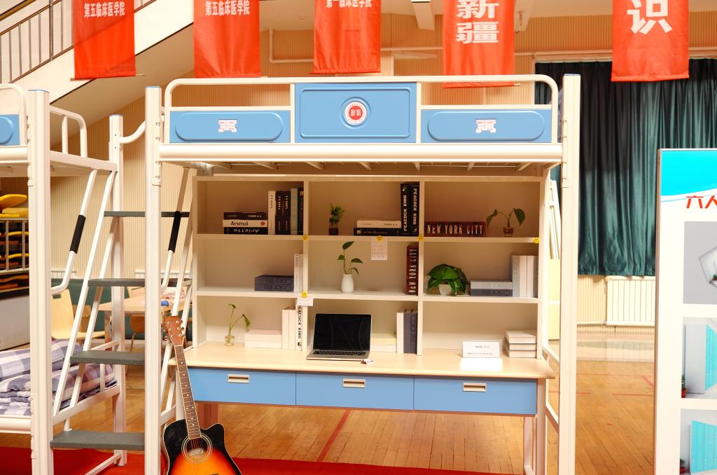 走进会场,各式各样的学生宿舍家俱让我们眼前一亮。我们细细选择了新校区宿舍的公寓用品,亲自体验现场的床、桌子、凳子。最让我们感动的是,高书记仔细检查着床的焊接口,看床的边角是否有棱角,是否会刮到学生?这些小细节,高书记都亲自体验并询问我们的感受。