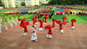 开幕式上,精彩的大型团体表演点亮了运动会,由230多名新医学子们组成的啦啦操表演队踏着动感的节拍,和着欢乐的旋律,奔跑舞动,昭示着新医学子的青春活力与朝气。400名健美操选项班的同学们表演的健身操和现代流行热舞相结合的有氧健身运动,展现了体育的力与美。