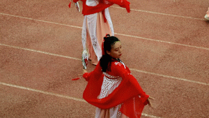 下午3点30分,伴随着“运动员进行曲”,和着音乐的节拍,国旗仪仗队迈着整齐而坚定的步伐,托举着鲜艳的五星红旗缓缓通过主席台,正式拉开了运动会入场式的序幕。在国旗的引领下,红旗方阵、附属中学鼓号队方阵,以及各学院运动员方阵依次入场。主席台和看台上的观众全体起立向各个方阵表示敬意、鼓掌加油。