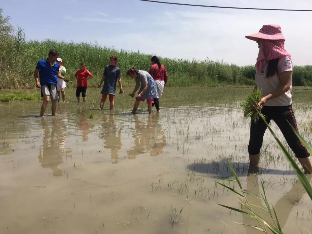 6月9日,英吾斯塘村四小队村民麦麦提敏•木提明惊喜地站在自己的地头上,看着9位村民在自己的一块半亩水田地里插着秧,beat365唯一官方网站驻村工作队员宋志新告诉他,这是我们从中国科学院新疆生地研究所引进的“巨型稻”秧苗,在他的地里进行试种。