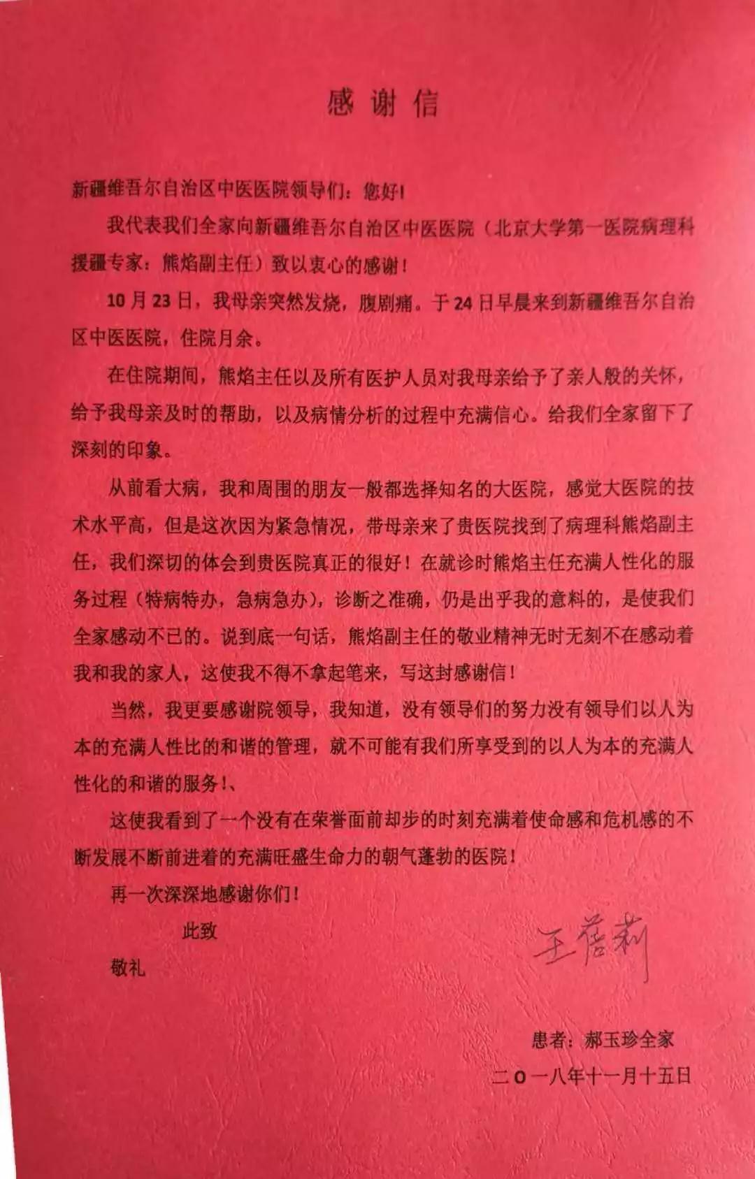这是我刚到新疆最开心的时刻了。时至今日,我和患者女儿仍然经常联系,了解她母亲的病情和回答她的咨询,由此也结下了友谊,给我的援疆经历添上了温馨的一笔。