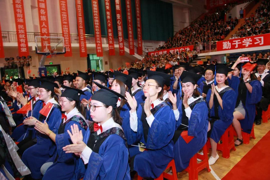 今天,是个令人难忘的日子。3338名2019届毕业生顺利地完成学业,即将告别母校,开启新的人生征程。学校在这里举行隆重的毕业典礼,既是对你们大学生活的纪念,也是临行前的道别,更是对你们新生活的祝愿。在这个充满荣耀、收获喜悦的时刻,请允许我代表学校党委向2019届全体毕业生表示最衷心、最热烈的祝贺!同时也让我们共同感谢一路养育和支持你们的家长,共同感谢多年来教育和培养你们的老师,共同感谢那些服务和关心你们的食堂师傅、宿管阿姨、保安大叔,还有更多默默爱护和陪伴你们一起成长的朋友们!你们辛苦了!