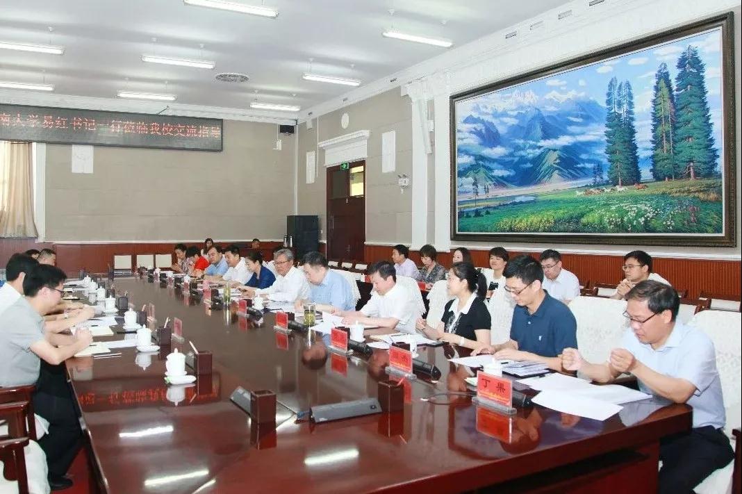 6月25日上午,中南大学党委书记易红教授一行来到beat365唯一官方网站,与beat365就进一步开展对口支援工作进行座谈交流,并看望慰问援疆干部。校党委书记高发水,校领导姚文兵、赵翠芳、李豫凯和相关职能处室、学院负责人,以及中南大学援疆干部人才、对口支援干部等参加了座谈会。