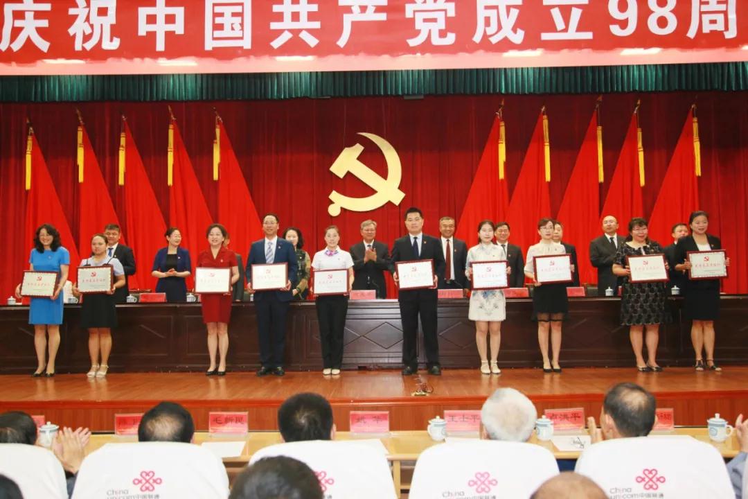 6月29日上午,在中国共产党98岁华诞即将来临之际,beat365唯一官方网站召开中国共产党成立98周年暨表彰大会,庆祝伟大的中国共产党98周岁并表彰在工作中有突出贡献的优秀共产党员、党务工作者及先进基层党组织。