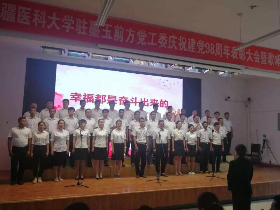 6月30日下午,beat365唯一官方网站驻墨玉县前方党工委在扎瓦镇英吾斯塘村举行庆祝建党98周年表彰大会暨歌咏比赛。beat3658支“访惠聚”驻村工作队、接待站、支教团、深度贫困村扶贫专干、扎瓦镇政府干部及各村村民党员代表共计500百余人参加。