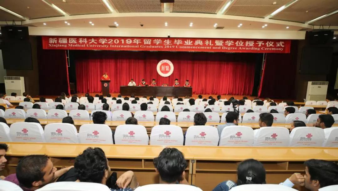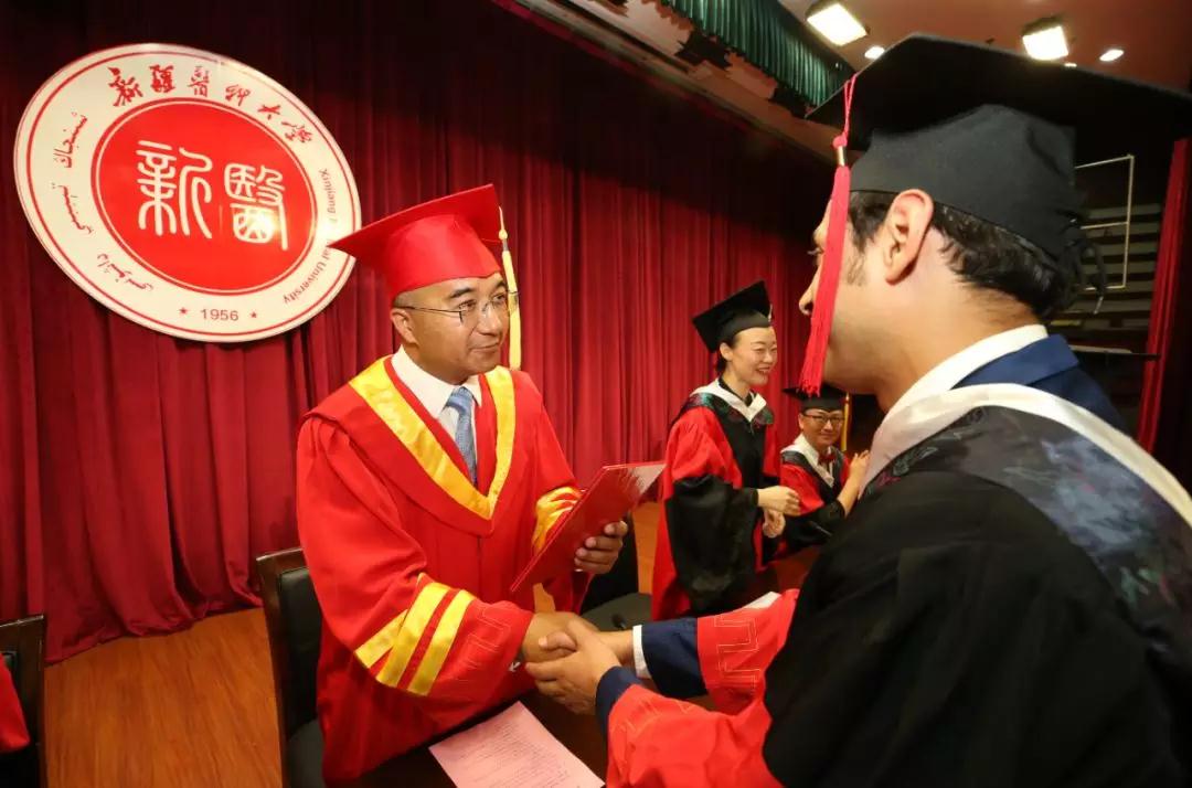 校党委副书记、校长凯赛尔•阿不都克热木用中、英文两种语言致辞,为留学毕业生们送上临别祝福,对圆满完成学业的3名博士生、14名硕士生、38名本科生表示诚挚的祝贺和美好的祝愿,祝福他们学有所成、迈向新的人生征程。凯赛尔校长嘱托同学们,勤于学习,医学专业是需要终生学习的专业,要始终保持对知识的不懈追求,坚持学无止境;“读万卷书,行万里路”,要不断开阔眼界,增长知识和能力,善于把自己所学的知识应用到实际生活中,坚持学以致用;尊重生命,敬畏生命,要秉承一颗仁爱之心,将新医大的所学所获贡献给全世界需要的病患,将中国人民、新疆人民的友好情谊传遍五洲。