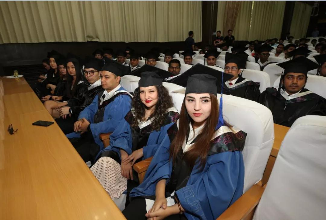 学生处、研究生处、外事处等职能处室领导、部分学院领导、教师代表,全体留学生参加了毕业典礼。