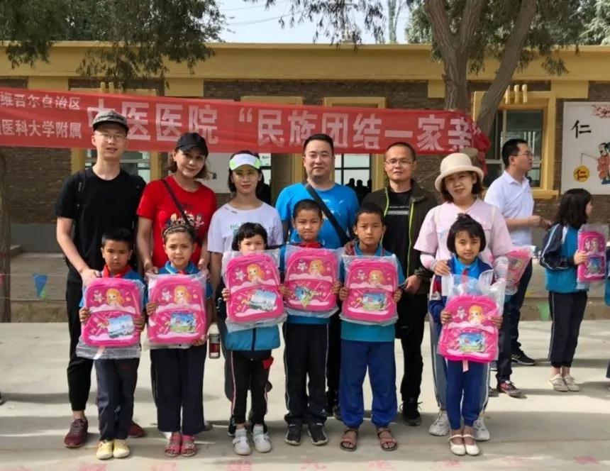 转眼又到开学季, 9月1日,beat365唯一官方网站附属中医医院的结亲干部们代表医院向和田地区墨玉县芒来乡阿克塔木村小学赠送了200个爱心书包。