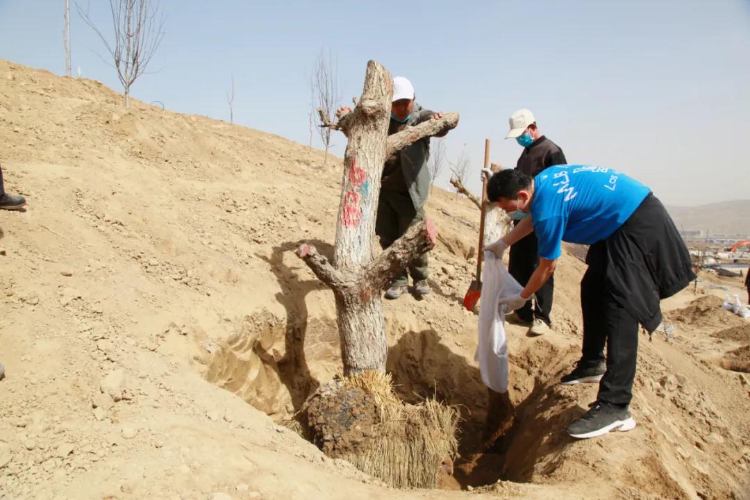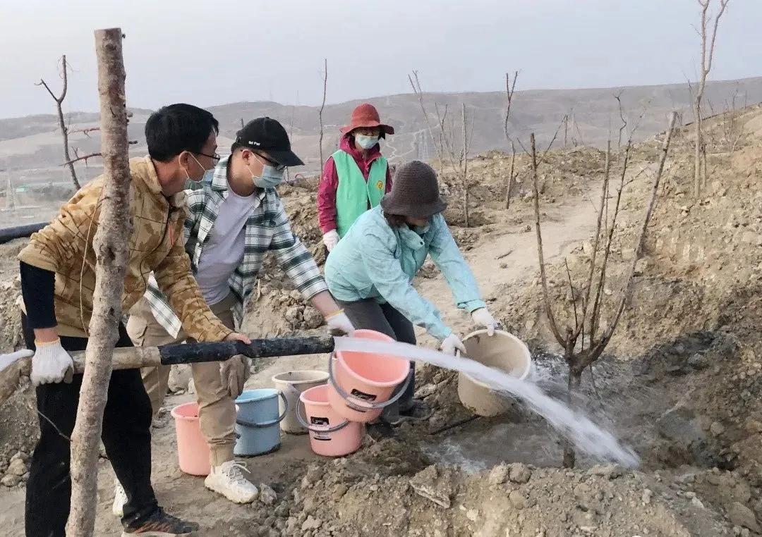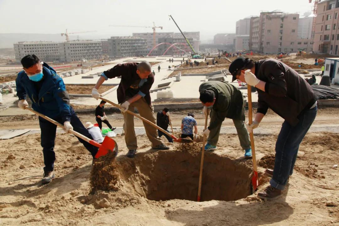 挖坑、培土、栽树、浇水……