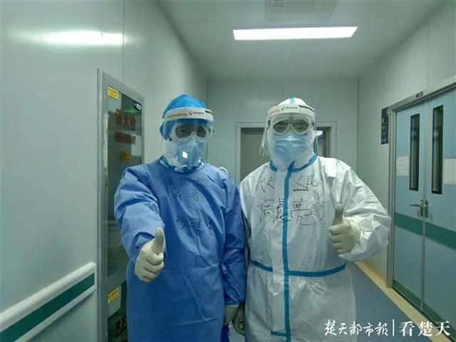那天,即将离别的战友们拍了很多合影,有一张照片,让杨建中尤感珍贵。照片里,他和周晨亮没穿防护服,没戴护目镜,甚至连口罩都取下了,他说,“在拍合影的一瞬间,我取下了口罩,晨亮主任看我取了口罩,睿智的他也心领神会,摘下了自己的口罩,于是才有了这张难得的合影,‘我想记住你的模样’!”