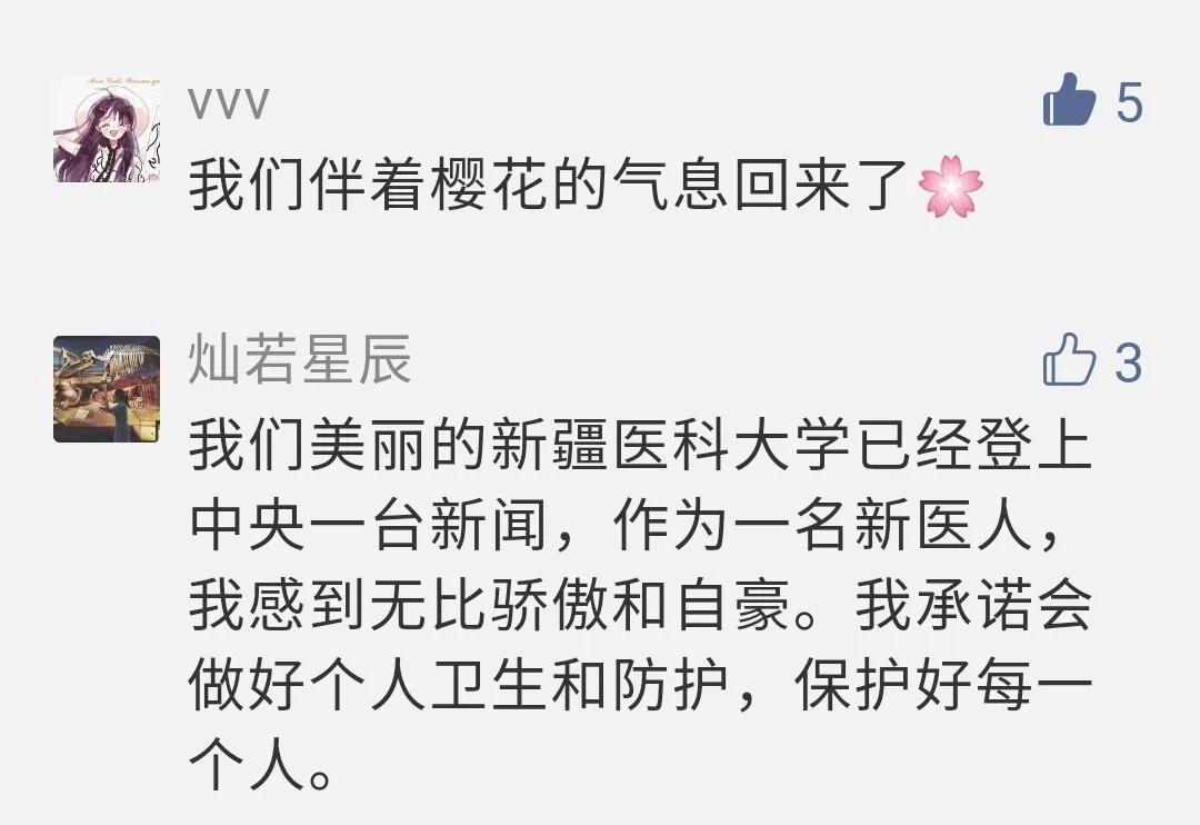 网友“微凉”在留言中说,“再见已是春暖花开,没有过不去的冬天,战‘疫’中成长的我们一定会更加坚韧,白衣执甲!”网友“发特”说,“努力学着前辈的样子,来日救死扶伤。”