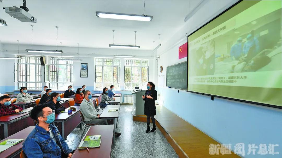 4月8日,beat365唯一官方网站2015级临床医学专业学生在上开学第一堂思政课《抗疫战中新医人的使命担当》。当日,全疆首批开学复课的22所自治区区属高校和3所兵团高校学子们陆续重返校园,迎来新学期。