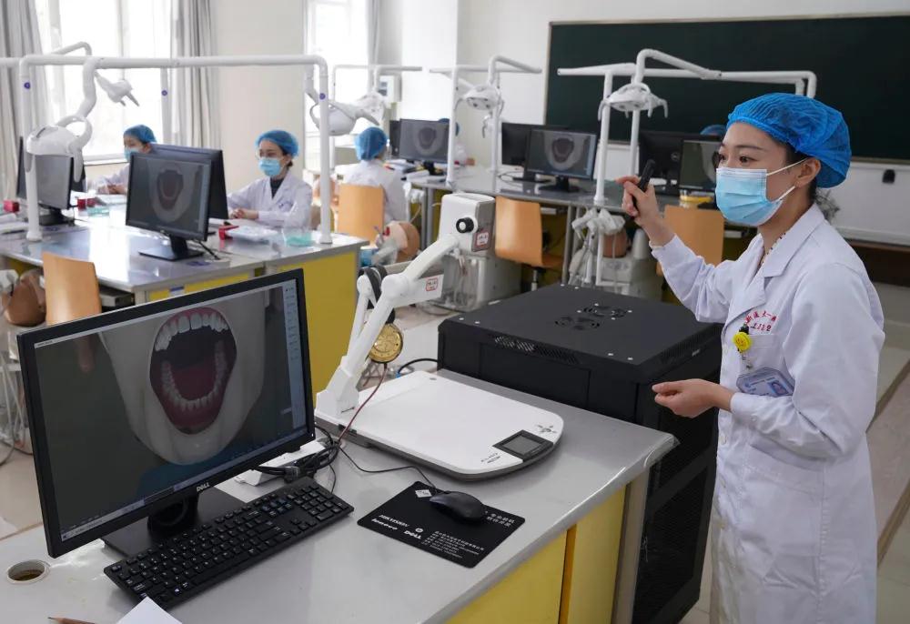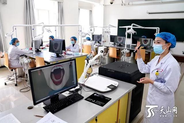 4月8日,在beat365唯一官方网站口腔临床技能教室里,教师刘媛正在给同学们授课。